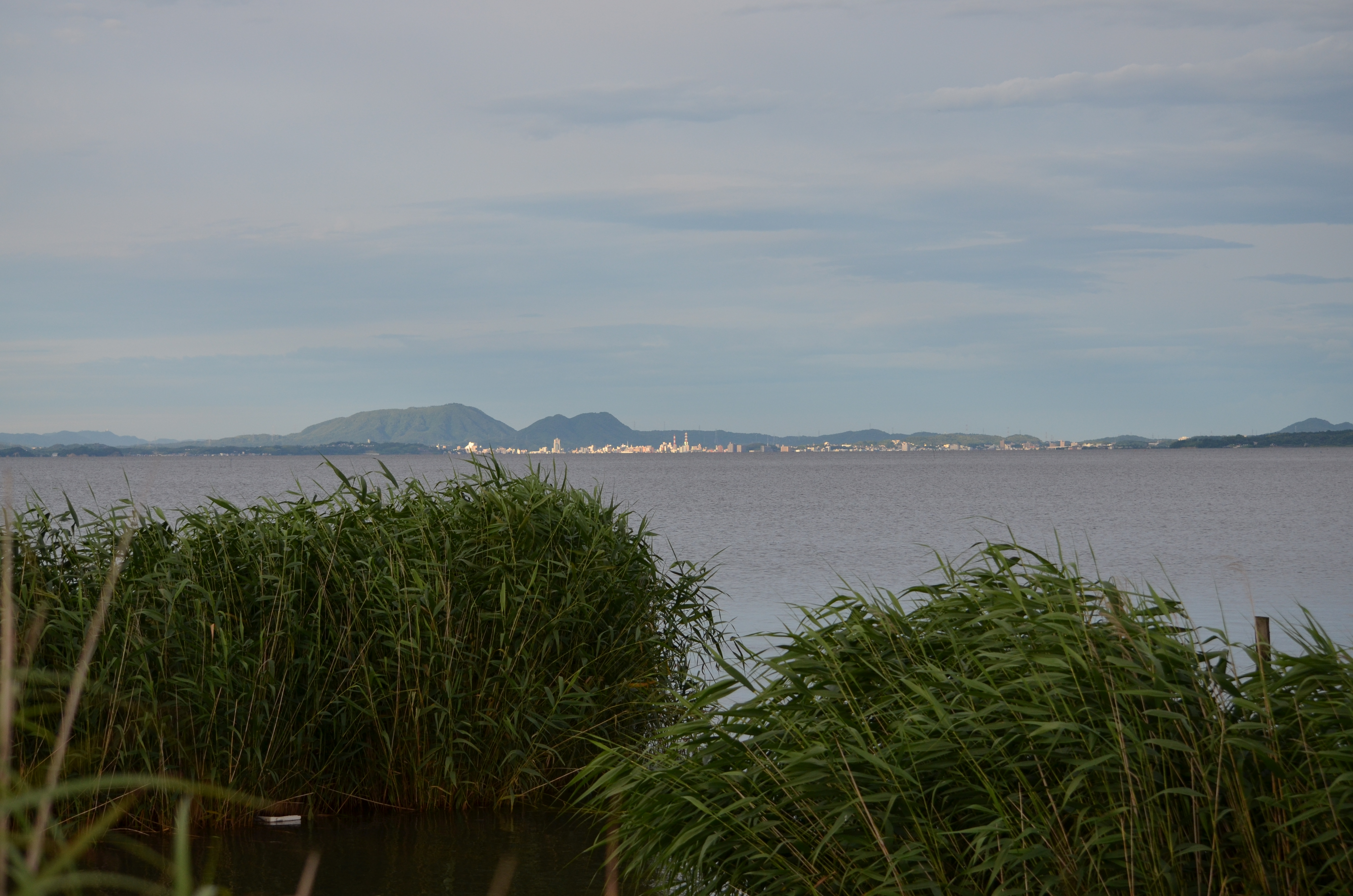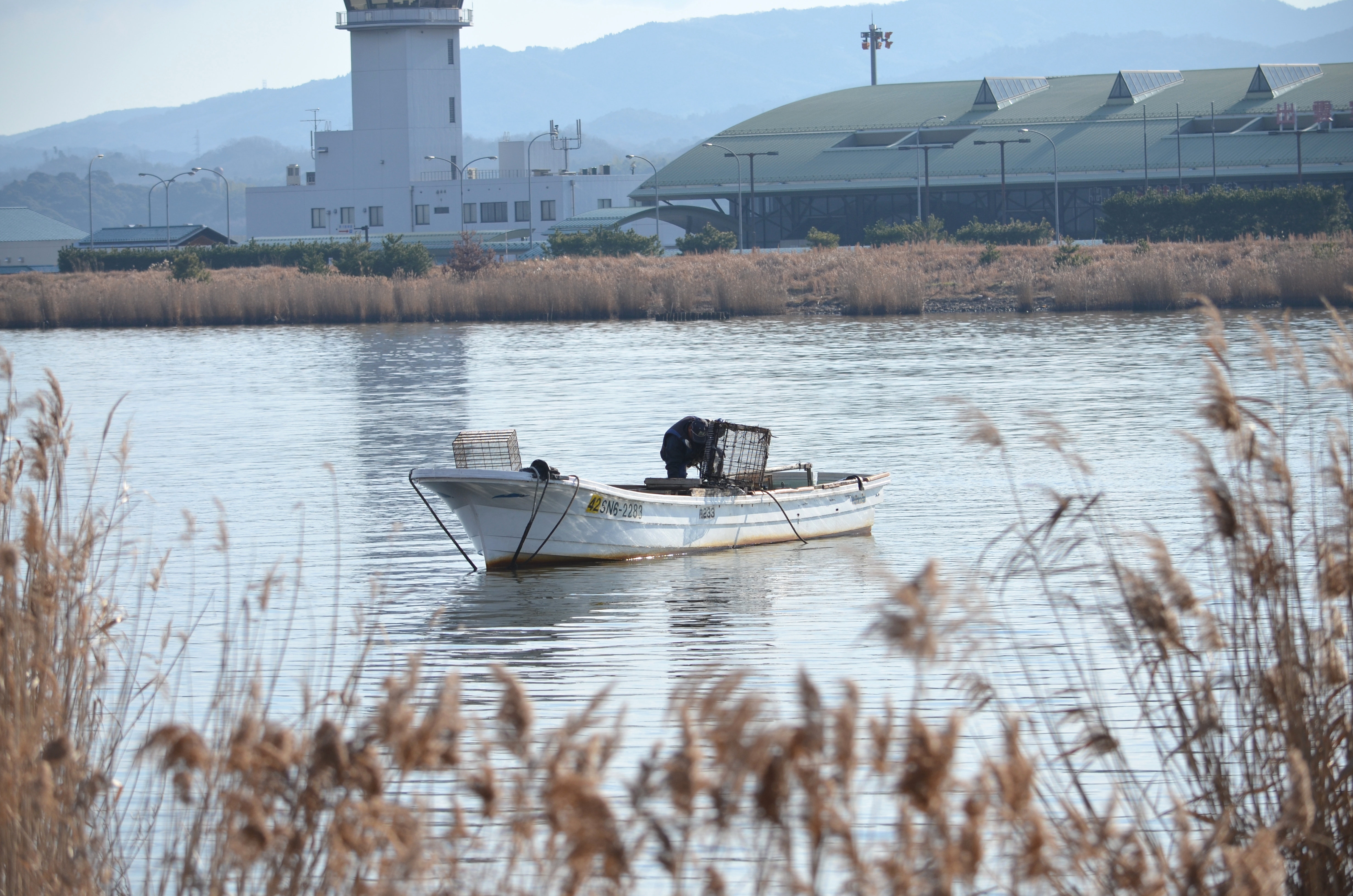 昔と異なって、葦と菰(マコモ)に覆われた水辺は消滅し、対岸には空港が出現していても、それはそれなりに幻想的な風景であり、興趣はつきません。