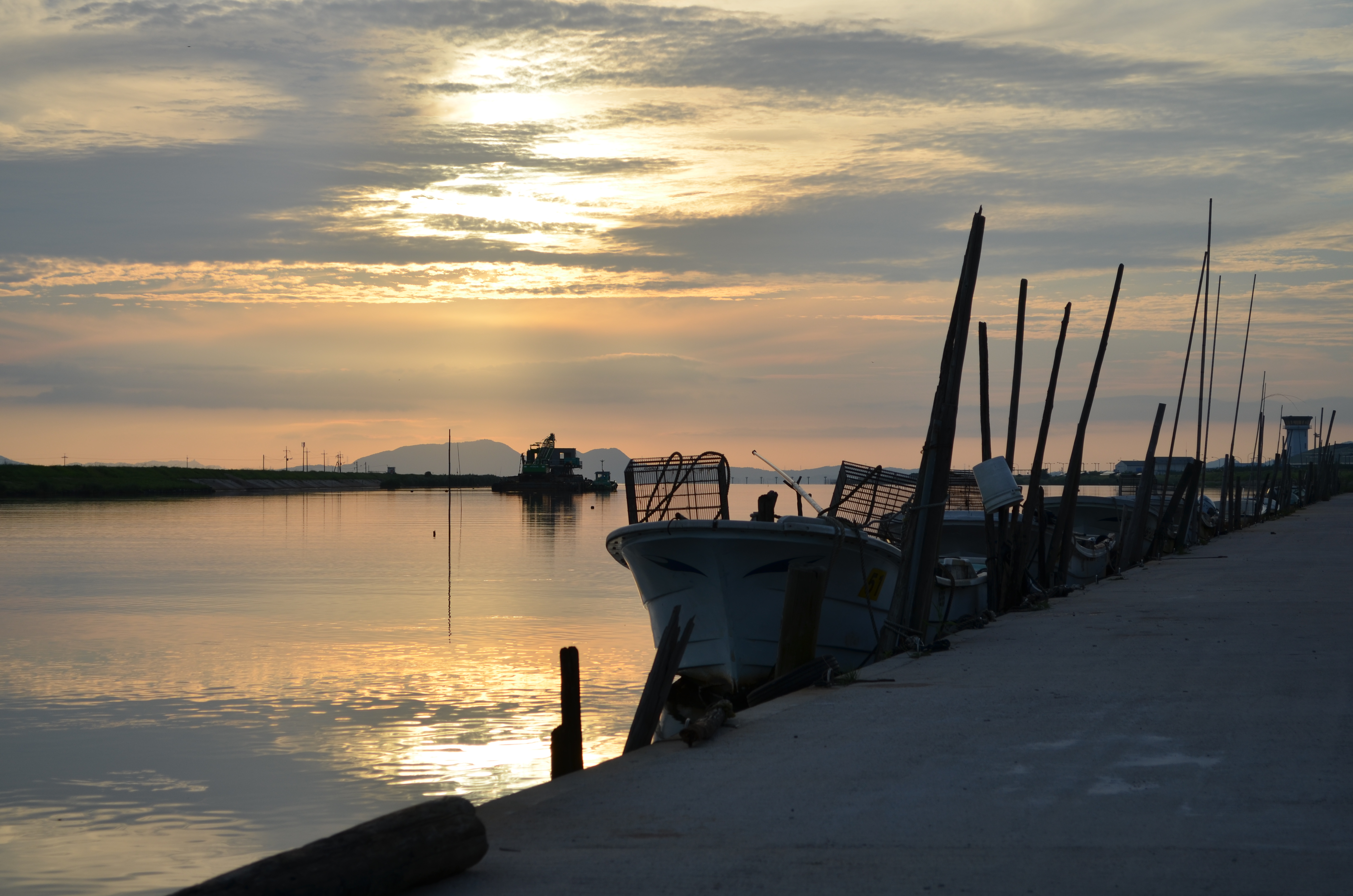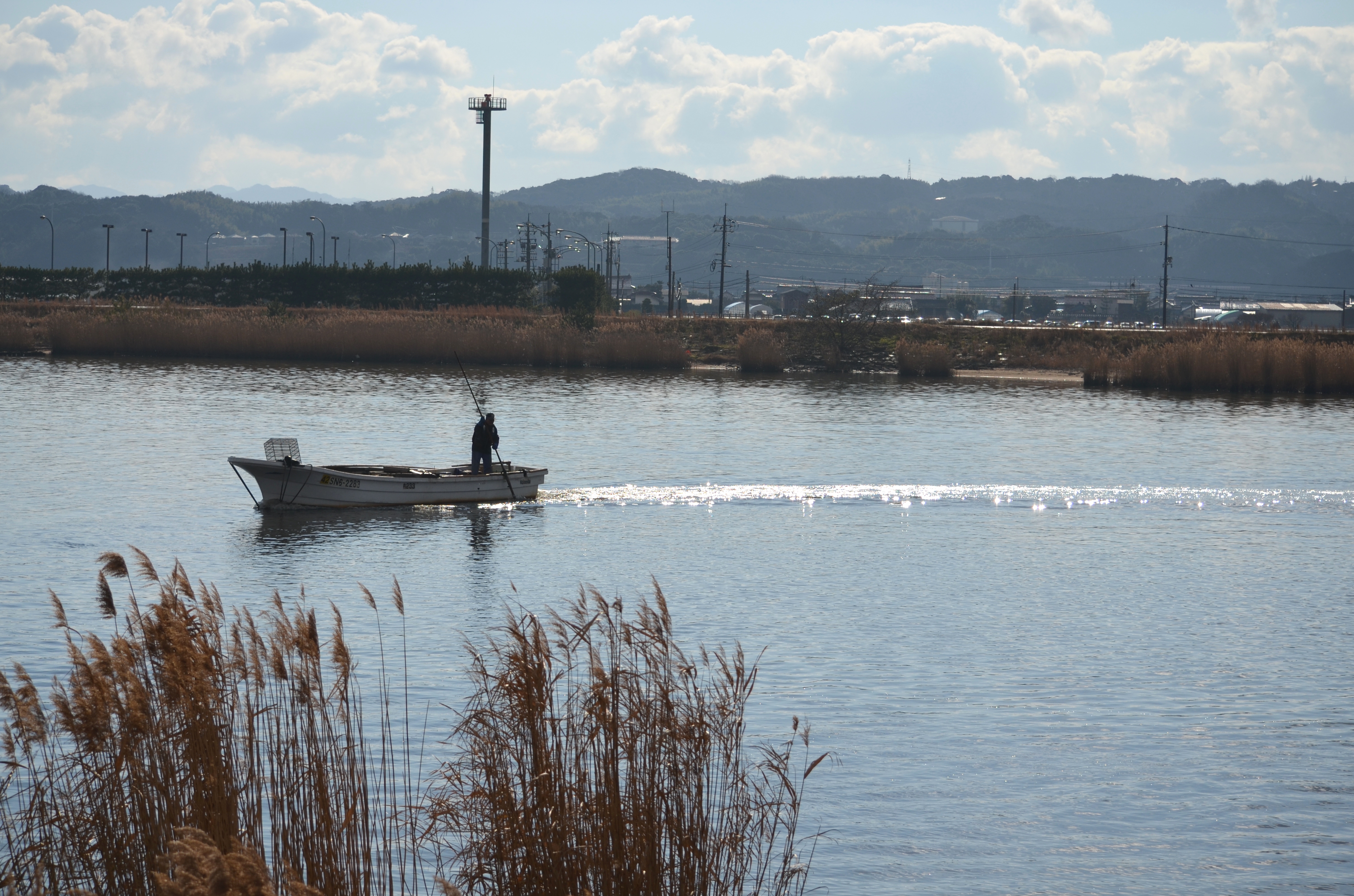 その後、船着き場から漁師さんの船に乗せてもらい十四間川に出ました。広い川面を吹き渡る風は心地よく、川の真ん中からの眺めはとても雄大でした。