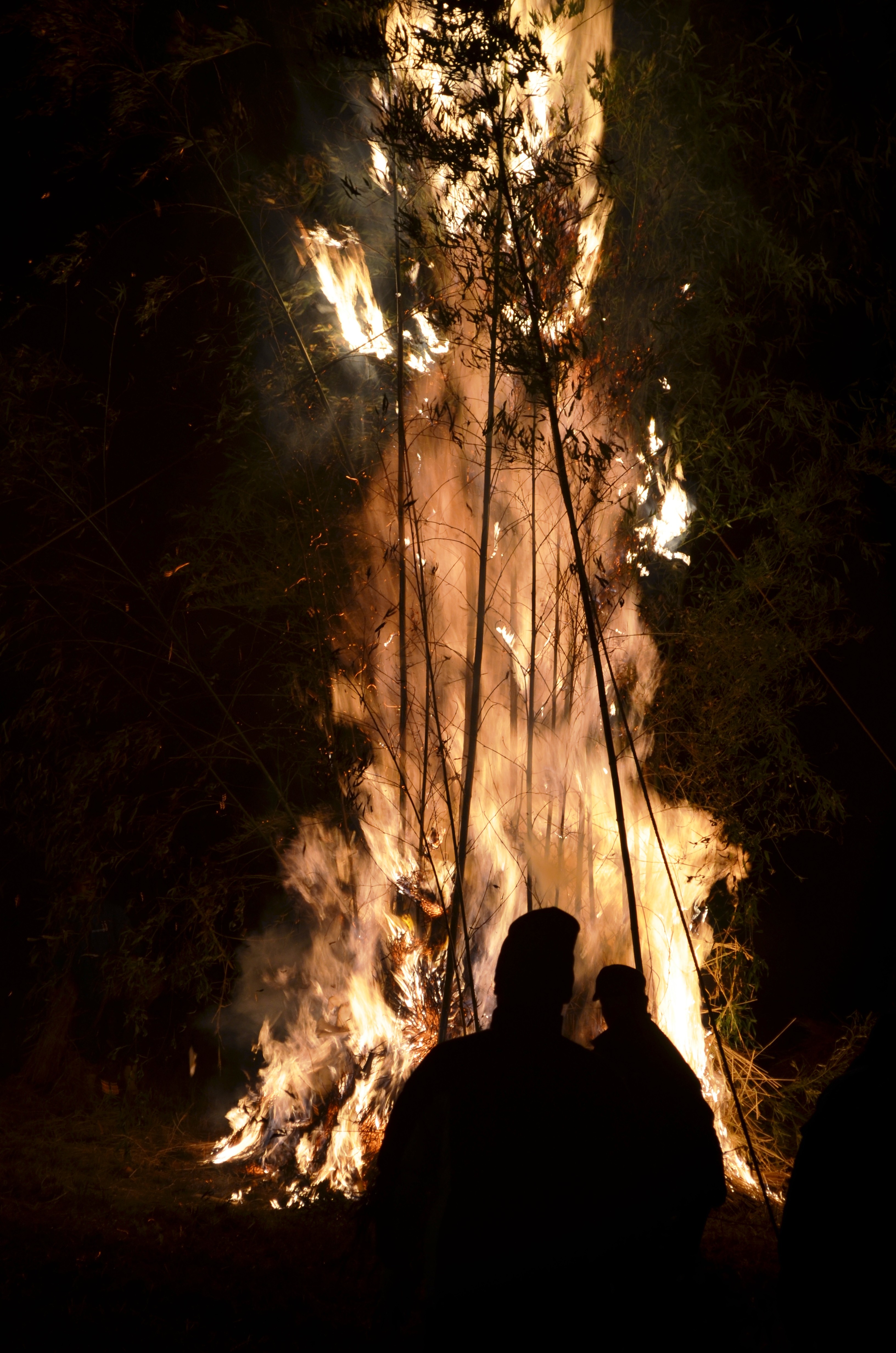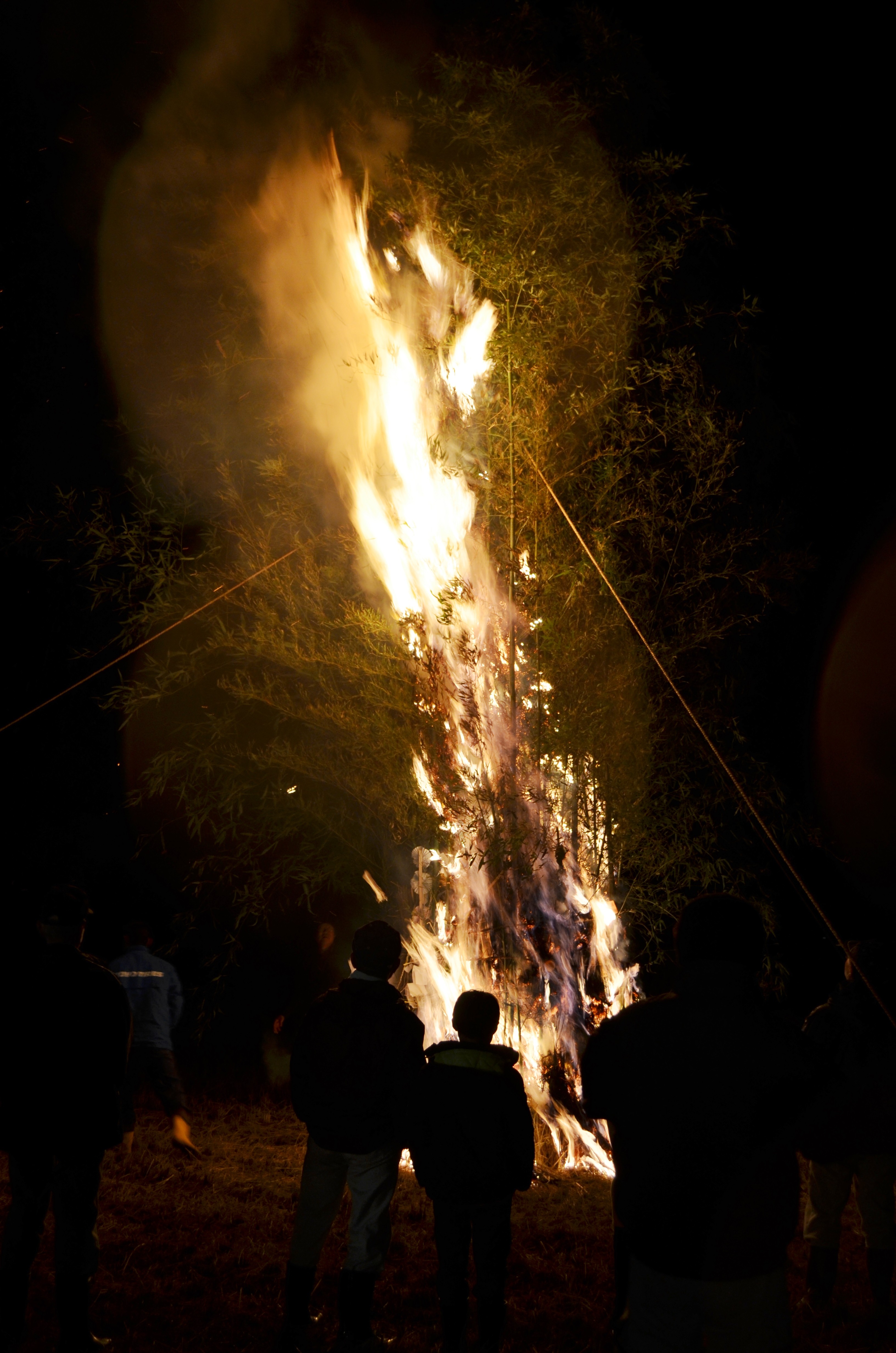 打ち上げ場所の宍道町昭和湖岸は、十四間川、出雲空港を挟んで南東に2㎞ほど離れたところであり、十四間川堤防は絶好の花火見物場所です。私たちのほかにも何組もの見物者があり、堤防上のあちらこちらに懐中電灯の明かりが揺らめき、尺玉が上がると歓声が上がっていました。