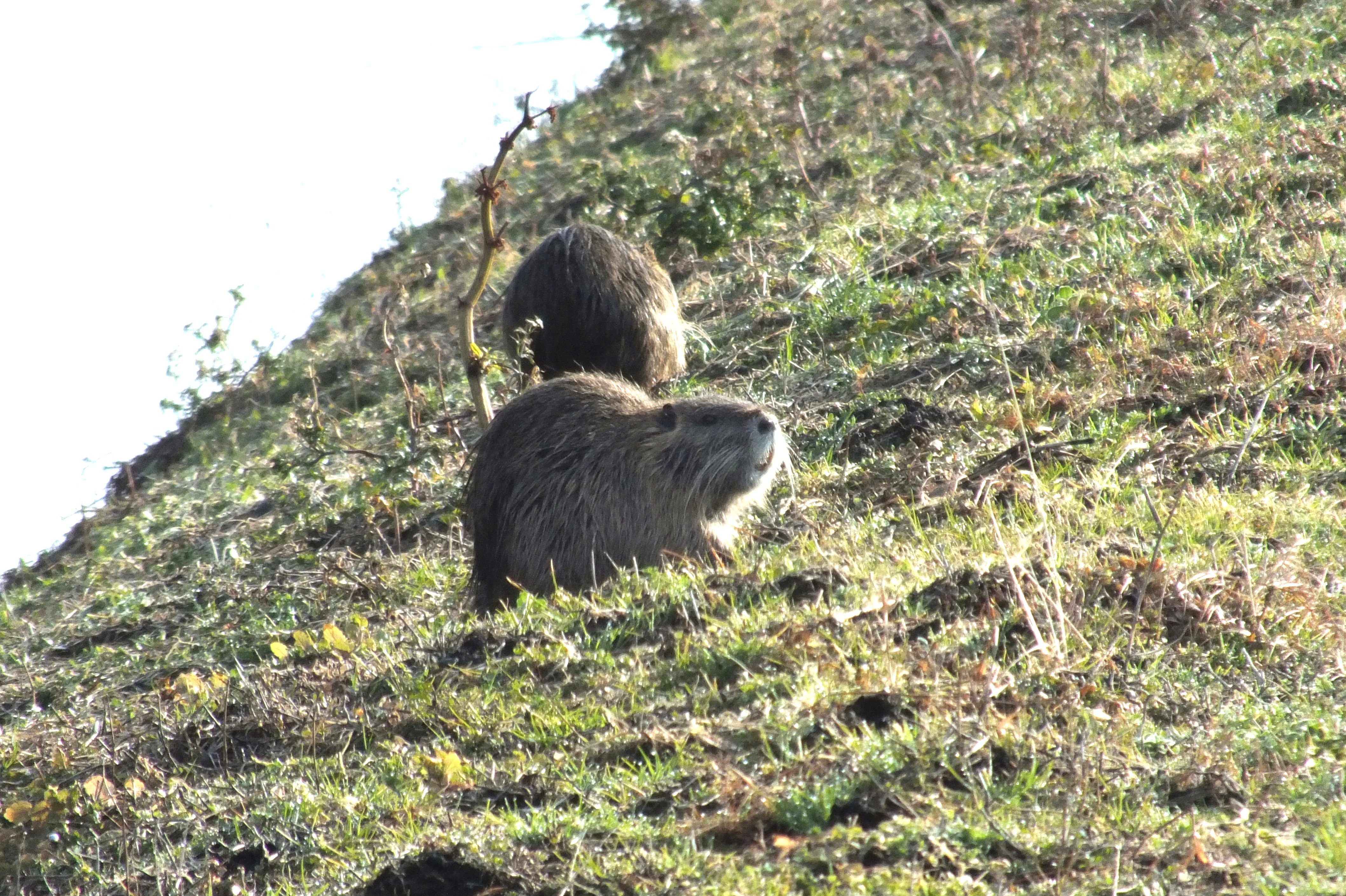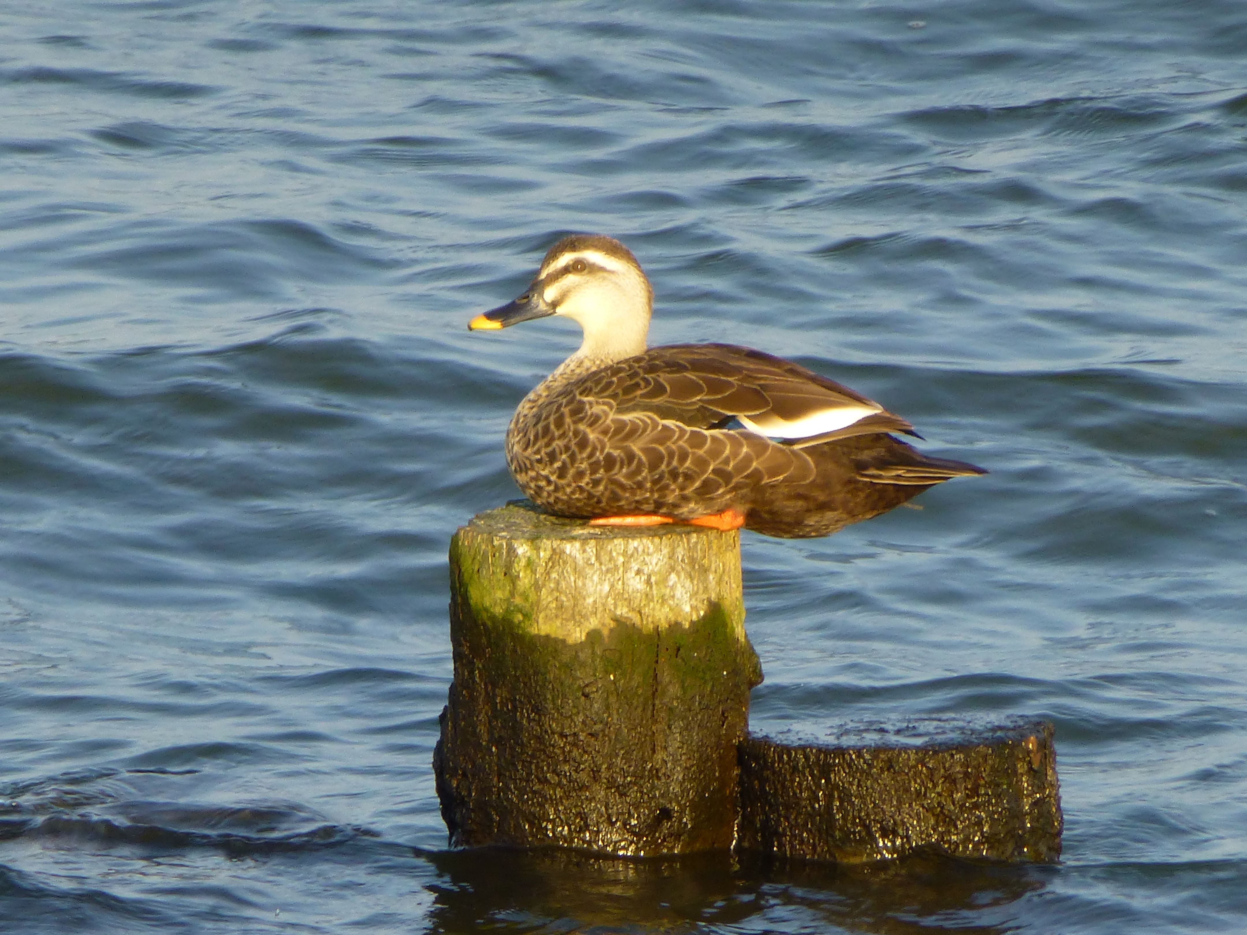 十四間川の裏を流れる集水路の路肩には、エノコログサ(狗尾草。ねこじゃらし)が気持ちよさそうに風に揺れ、集水路の中ではヌートリアが、近づいても逃げもせずこちらも気持ちよさそうにスイスイと泳いでいます。堤防に上がれば、十四間川河口の杭の上でカルガモが日向ぼっこをしていました。暑く長かった夏が終わり、秋の訪れをみんな喜んでいるようです。