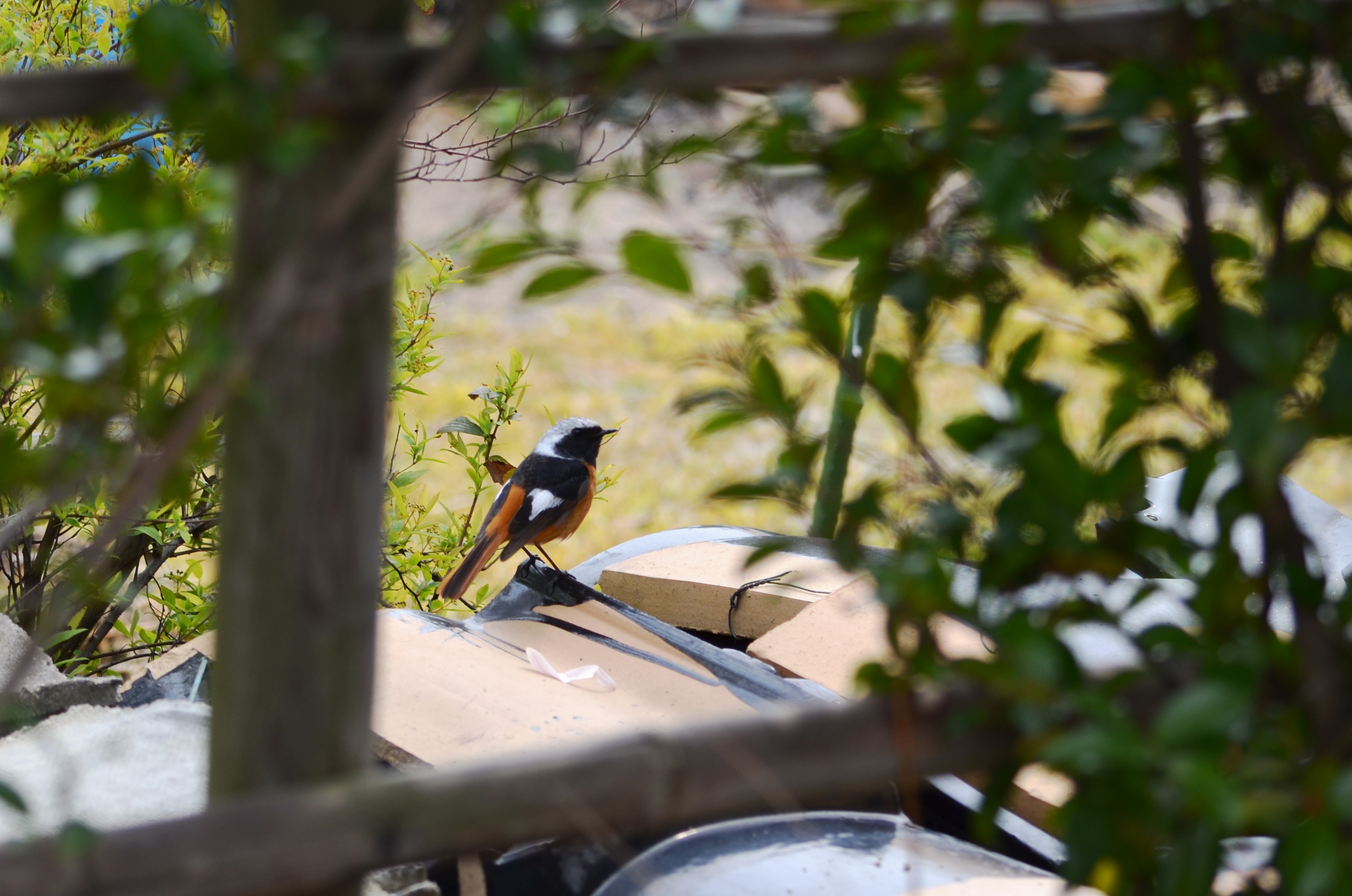 そして、垣根の辺りでは、今日もジョウビタキのオスがきれいな羽根を見せて、急がしそうに餌を探して歩き回っています。こちらは冬鳥なので、もう間もなく北の国へ帰っていくのではないでしょうか。