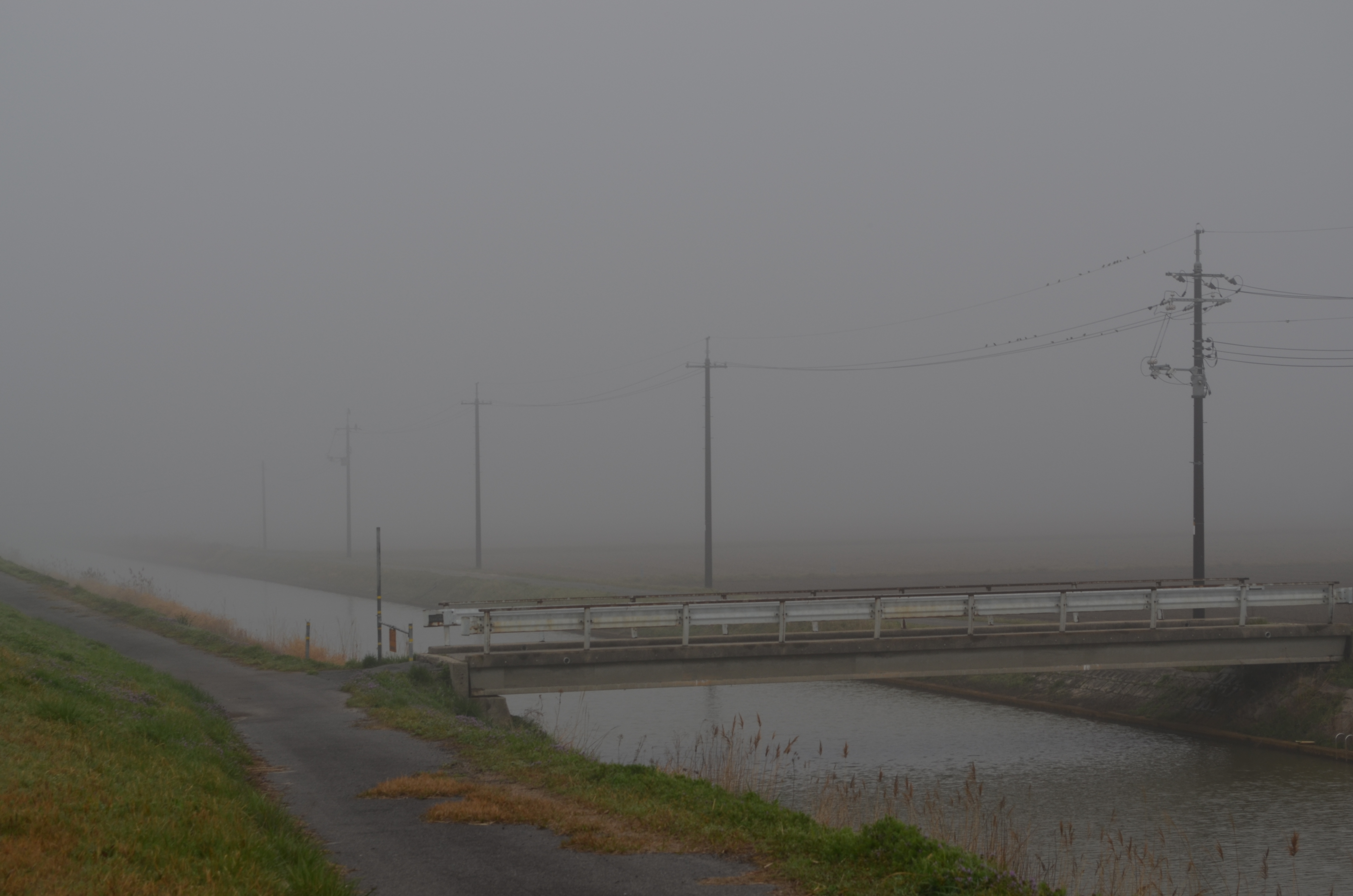 深い朝靄も陽が昇るにつれて次第次第に薄れていき、やがていつもと変わらぬ見慣れた光景が姿を現していきます。その何も見えない白い世界から光に包まれた光景に移る間に見られる墨絵のような瞬間は何度見ても飽きることがありません。