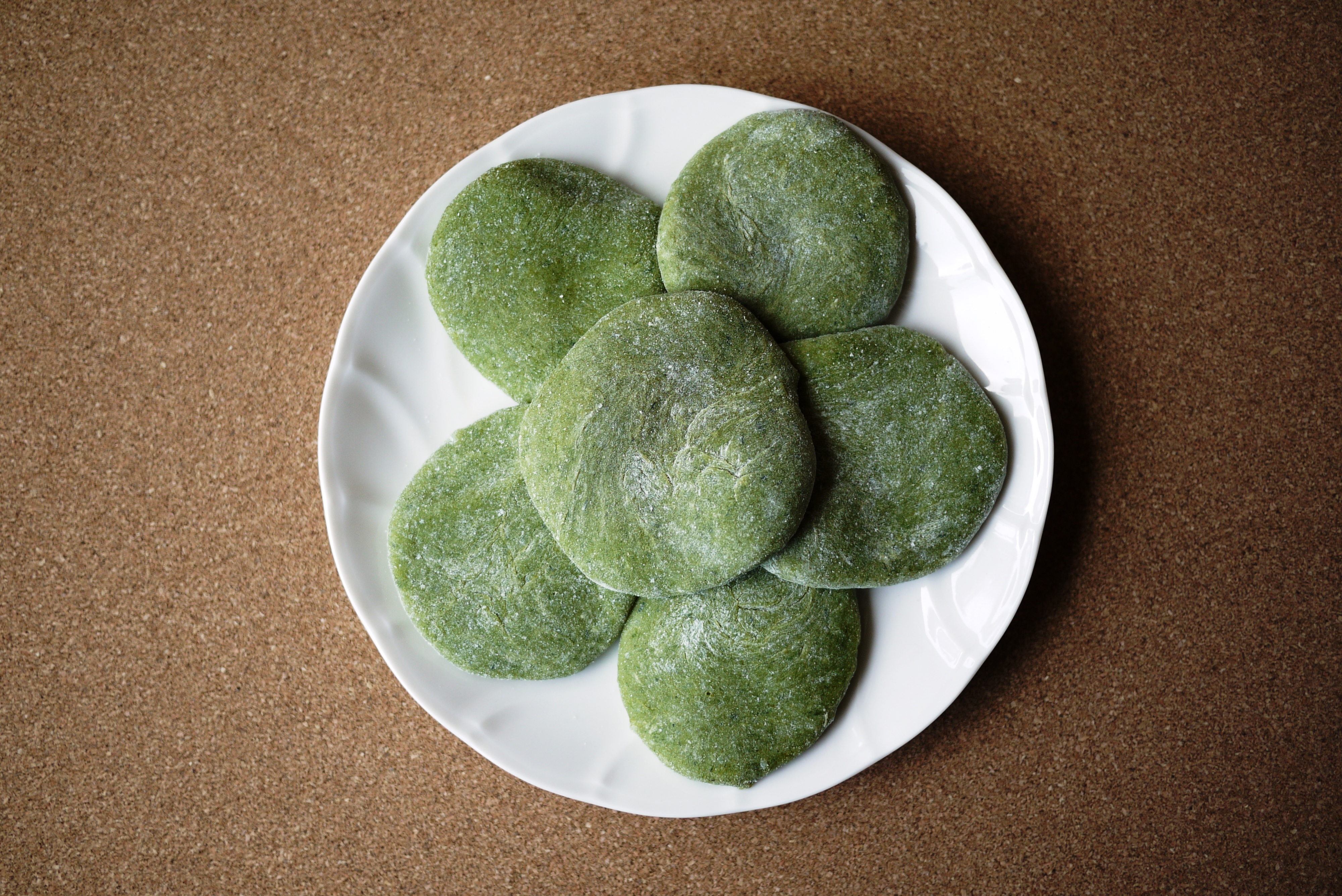そんな中でもとくに目立つのが土手のそこここに勢いよく盛り上がって生えているヨモギです。土の固めのところは銀色がかった緑に、適当に湿り気があって土の柔らかいところは大きく育って柔らかそうな淡い緑の葉となって風にそよいでいます。最近は、家庭用製パン機で簡単にお餅をつくことができますので、そういう柔らかいヨモギの葉を摘んで草餅を作ってみることにしました。