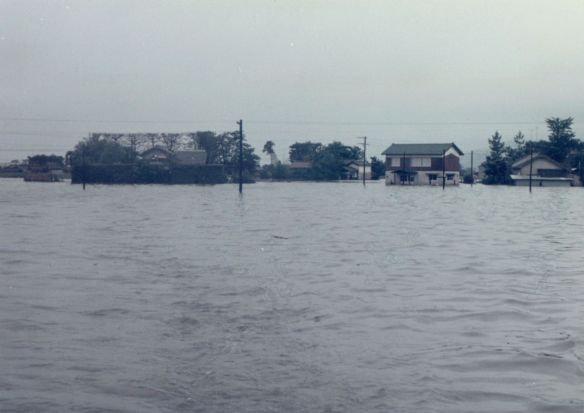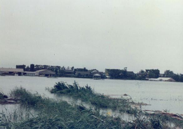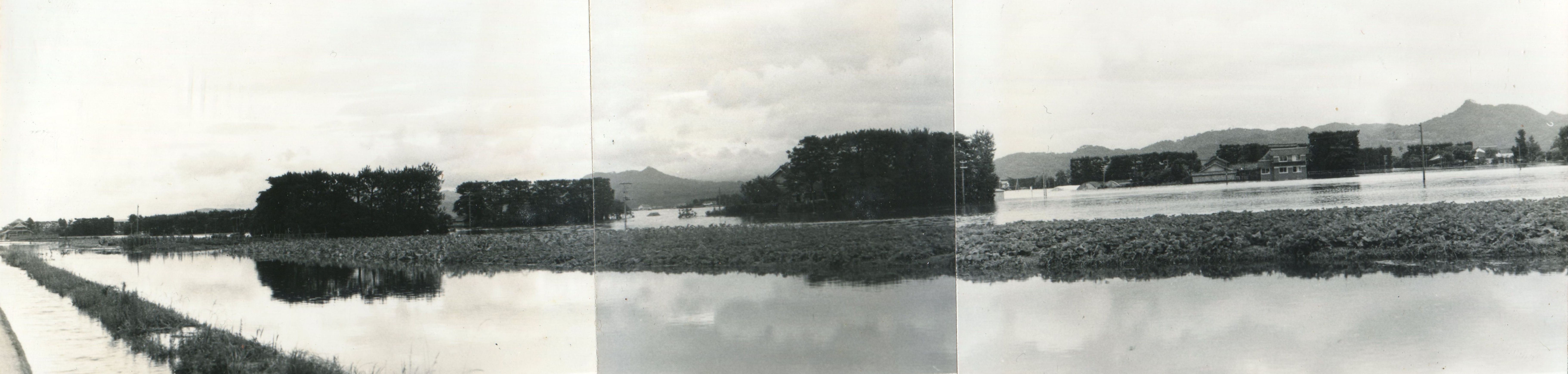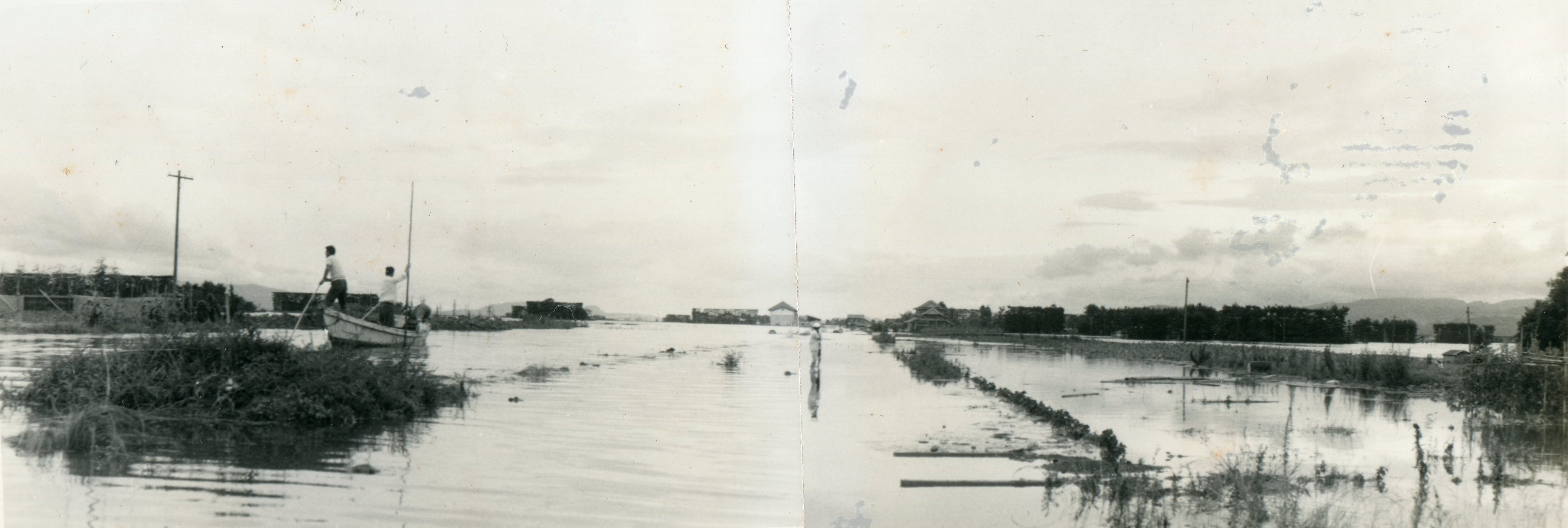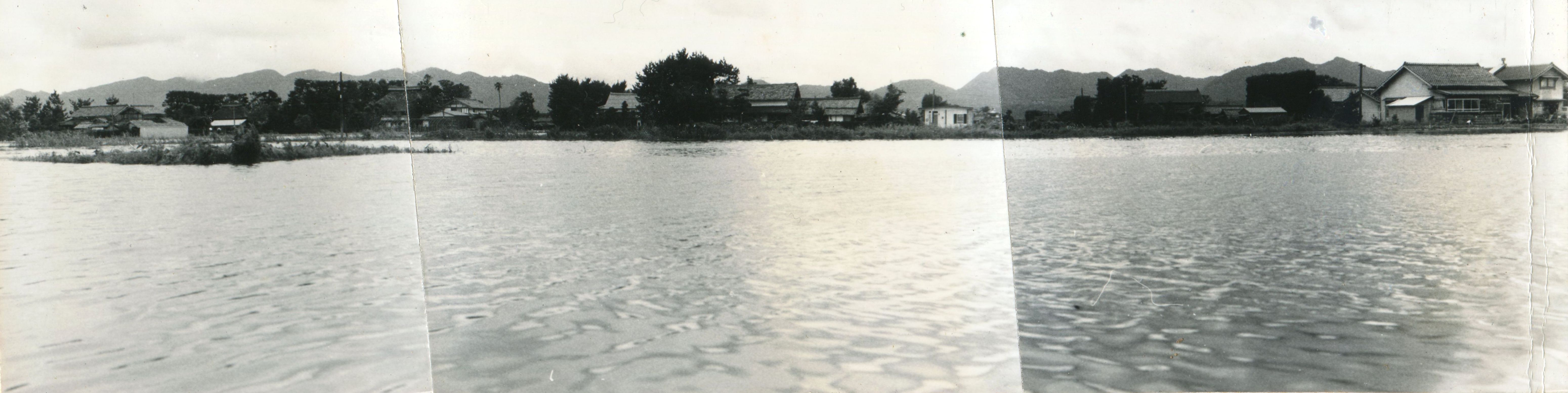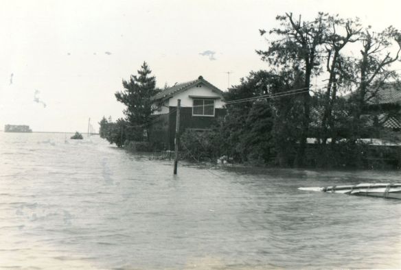 斐川町の47水害の記録(元斐川町職員錦織勉氏撮影) ここに掲載した写真は、旧斐川町役場に勤務されていた錦織勉氏が撮影され、アルバムに整理して保存されていたものです。同氏の承諾を得て、公開させていただくものです。 昭和47年に現像、焼き付けされ、アルバムに貼られていたものをスキャナを用いて取り込んでいます。したがって、画像の劣化があり不鮮明となっておりますことをご了承ください。 写真の下に付した説明は、錦織氏がアルバムに記載されていたものに多少の補足を加えたものです。また、錦織氏によるメモのない写真についても、場所等が特定できるものについては、適宜こちらで説明を付させていただいております。 7/12 午後2時 大字沖洲昭和地内 7/12 午後2時 大字荘原町島灘地内 沖洲天満宮参道から天満宮を望む(大字沖洲) 十四間川決壊箇所(大字黒目松江分地内) 7/13 午後2時 大字沖洲瑞穂地内 7/13 午後3時 大字三分市川東上組地内 7/13 午後4時 大字黒目松江分地内 7/13 午後4時 大字三分市六丁場周辺 7/13 午前10時 大字三分市川東上組地内 7/13 午前10時 葉煙草水田冠水 7/14 午後1時 大字坂田碇地内 大字黒目松江分地内(道路上) 大字三分市東部の住宅 大字三分市六丁場地内 大字三分市六丁場から三分市東部を撮影 大字三分市六丁場湖岸部(水深2.5m) 豚の救出作業(7/13大字三分市地内) 牛の救出作業 チューリップ球根搬出作業(7/13大字三分市) 伊達県知事視察 空港道路にて(大字沖洲瑞穂地内) 7/14 正午 県知事被災地視察 共有: X で共有 (新しいウィンドウで開きます) X Facebook で共有 (新しいウィンドウで開きます) Facebook その他 印刷 (新しいウィンドウで開きます) 印刷 いいね 読み込み中…