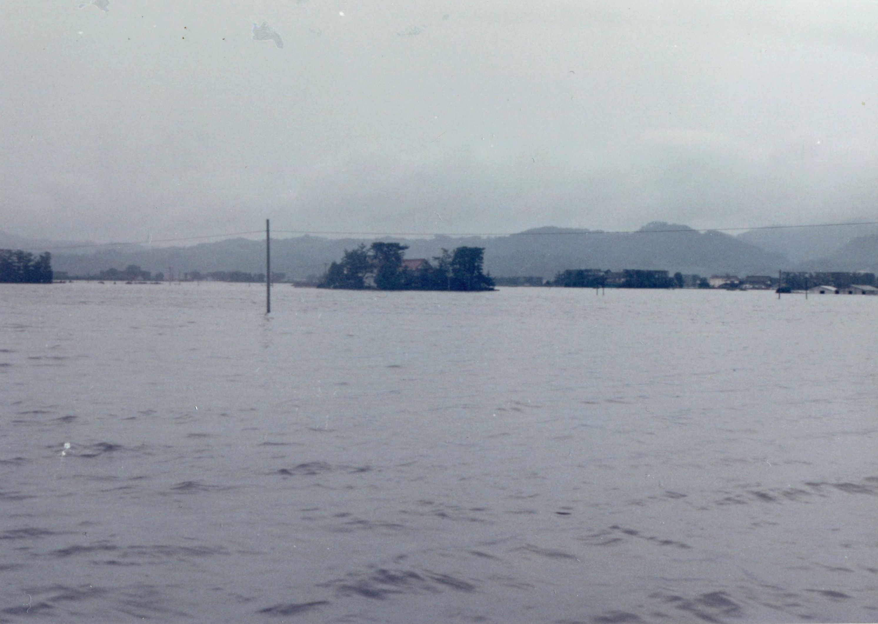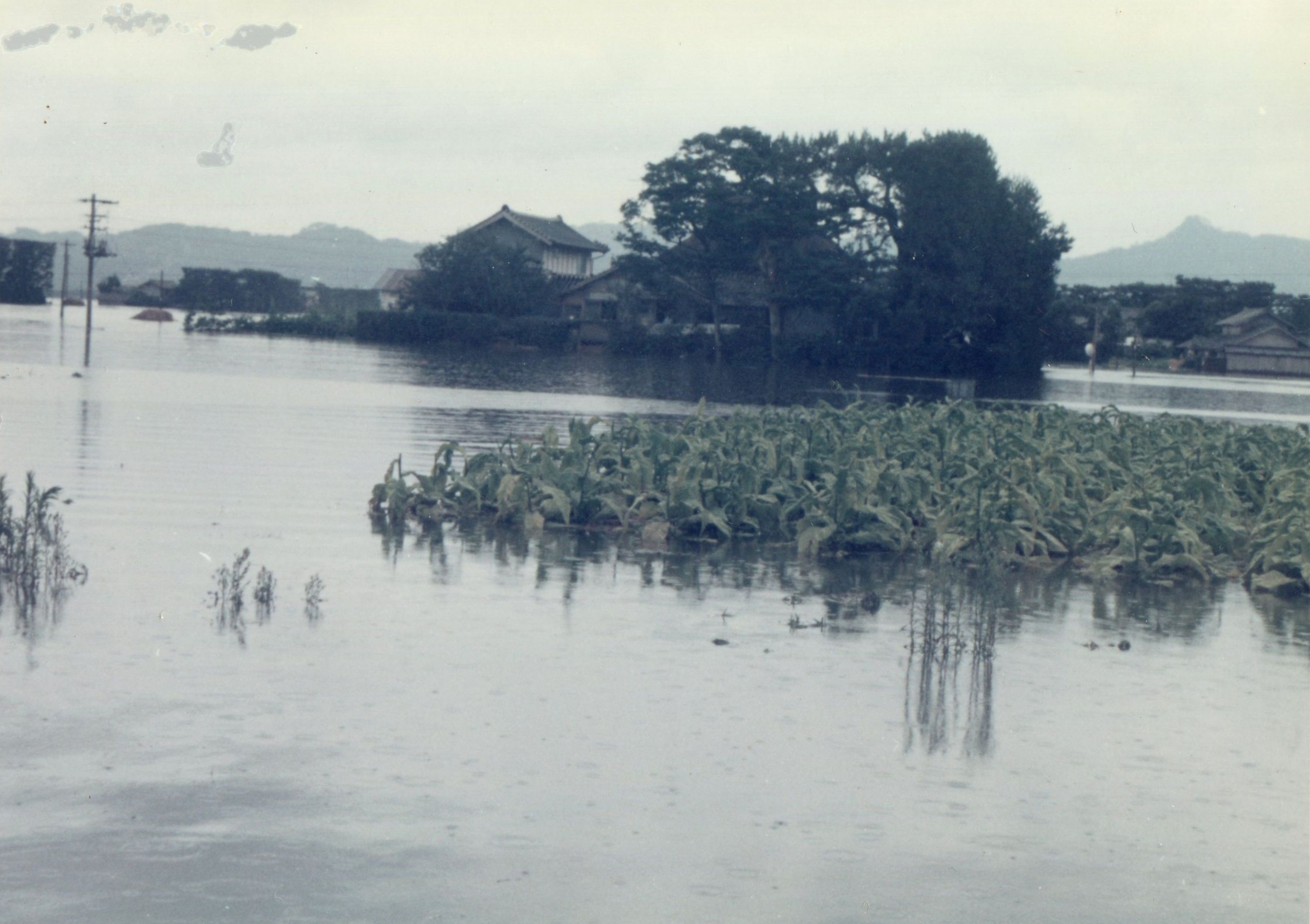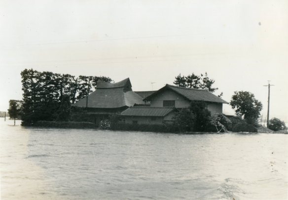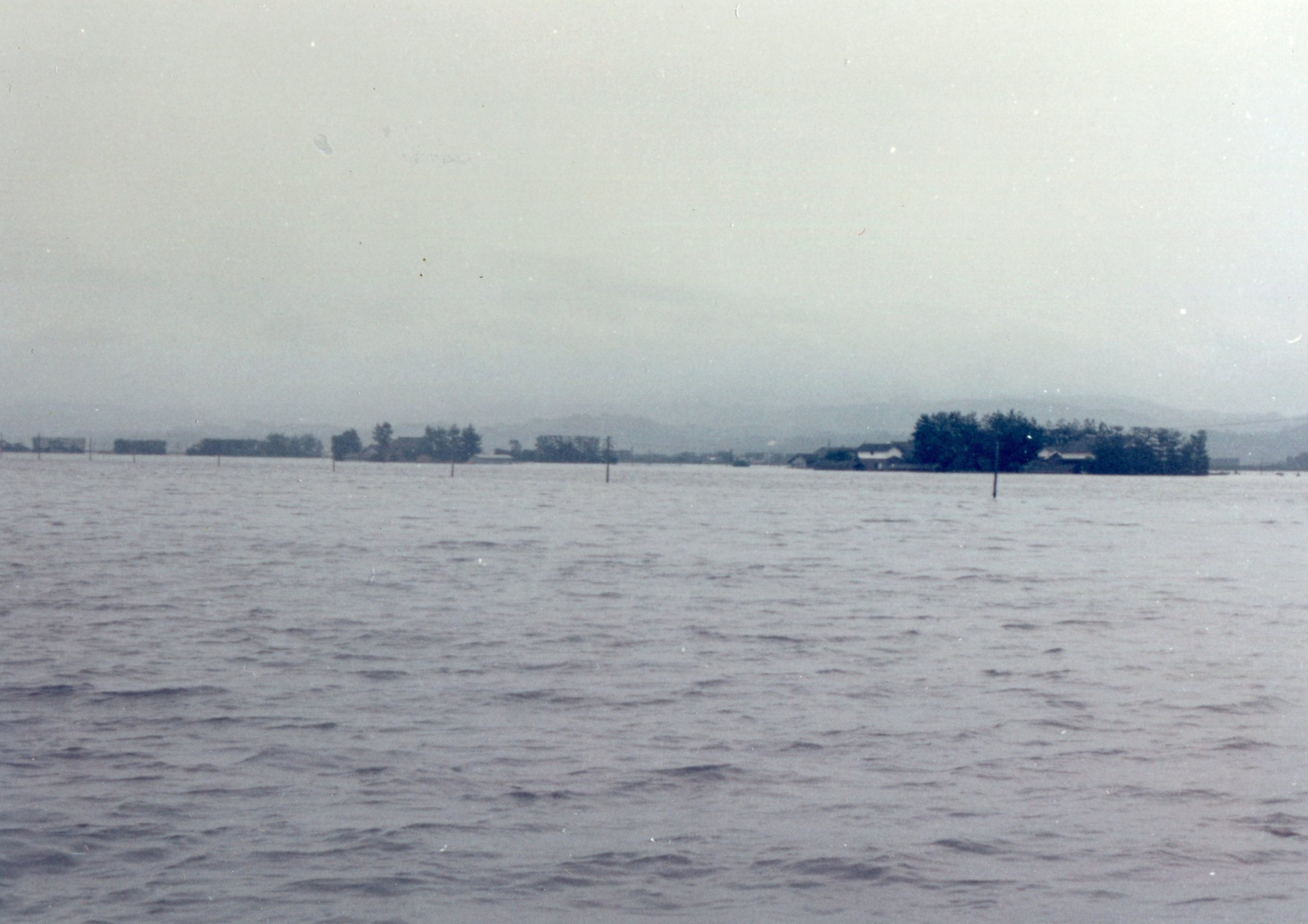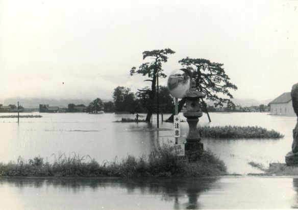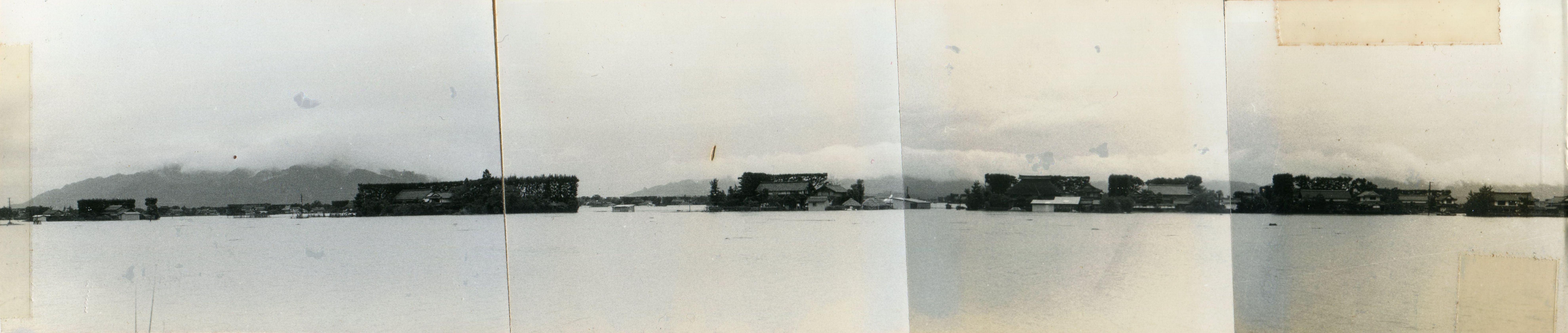 斐川町の47水害の記録(元斐川町職員錦織勉氏撮影) ここに掲載した写真は、旧斐川町役場に勤務されていた錦織勉氏が撮影され、アルバムに整理して保存されていたものです。同氏の承諾を得て、公開させていただくものです。 昭和47年に現像、焼き付けされ、アルバムに貼られていたものをスキャナを用いて取り込んでいます。したがって、画像の劣化があり不鮮明となっておりますことをご了承ください。 写真の下に付した説明は、錦織氏がアルバムに記載されていたものに多少の補足を加えたものです。また、錦織氏によるメモのない写真についても、場所等が特定できるものについては、適宜こちらで説明を付させていただいております。 7/12 午後2時 大字沖洲昭和地内 7/12 午後2時 大字荘原町島灘地内 沖洲天満宮参道から天満宮を望む(大字沖洲) 十四間川決壊箇所(大字黒目松江分地内) 7/13 午後2時 大字沖洲瑞穂地内 7/13 午後3時 大字三分市川東上組地内 7/13 午後4時 大字黒目松江分地内 7/13 午後4時 大字三分市六丁場周辺 7/13 午前10時 大字三分市川東上組地内 7/13 午前10時 葉煙草水田冠水 7/14 午後1時 大字坂田碇地内 大字黒目松江分地内(道路上) 大字三分市東部の住宅 大字三分市六丁場地内 大字三分市六丁場から三分市東部を撮影 大字三分市六丁場湖岸部(水深2.5m) 豚の救出作業(7/13大字三分市地内) 牛の救出作業 チューリップ球根搬出作業(7/13大字三分市) 伊達県知事視察 空港道路にて(大字沖洲瑞穂地内) 7/14 正午 県知事被災地視察 共有: X で共有 (新しいウィンドウで開きます) X Facebook で共有 (新しいウィンドウで開きます) Facebook その他 印刷 (新しいウィンドウで開きます) 印刷 いいね 読み込み中…