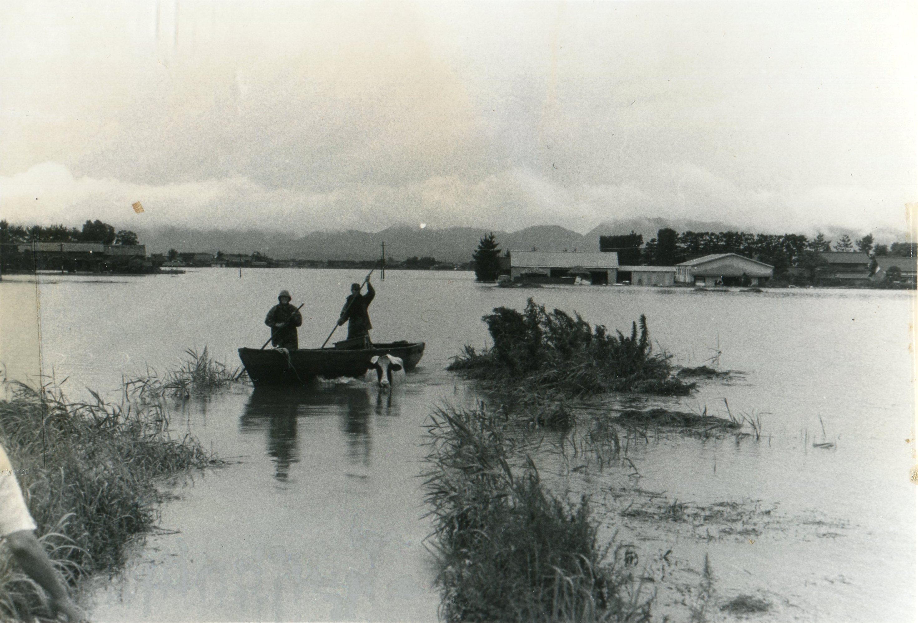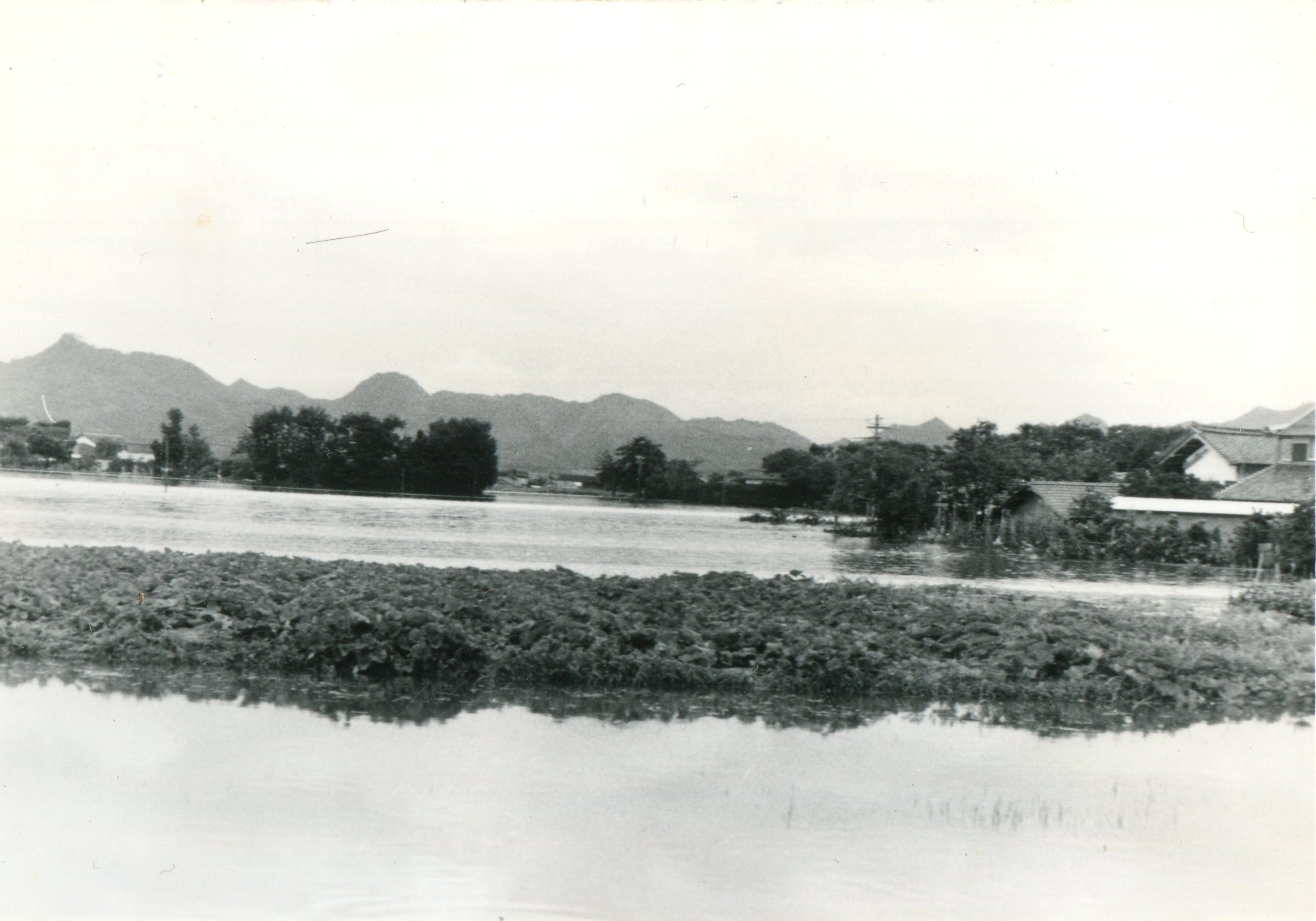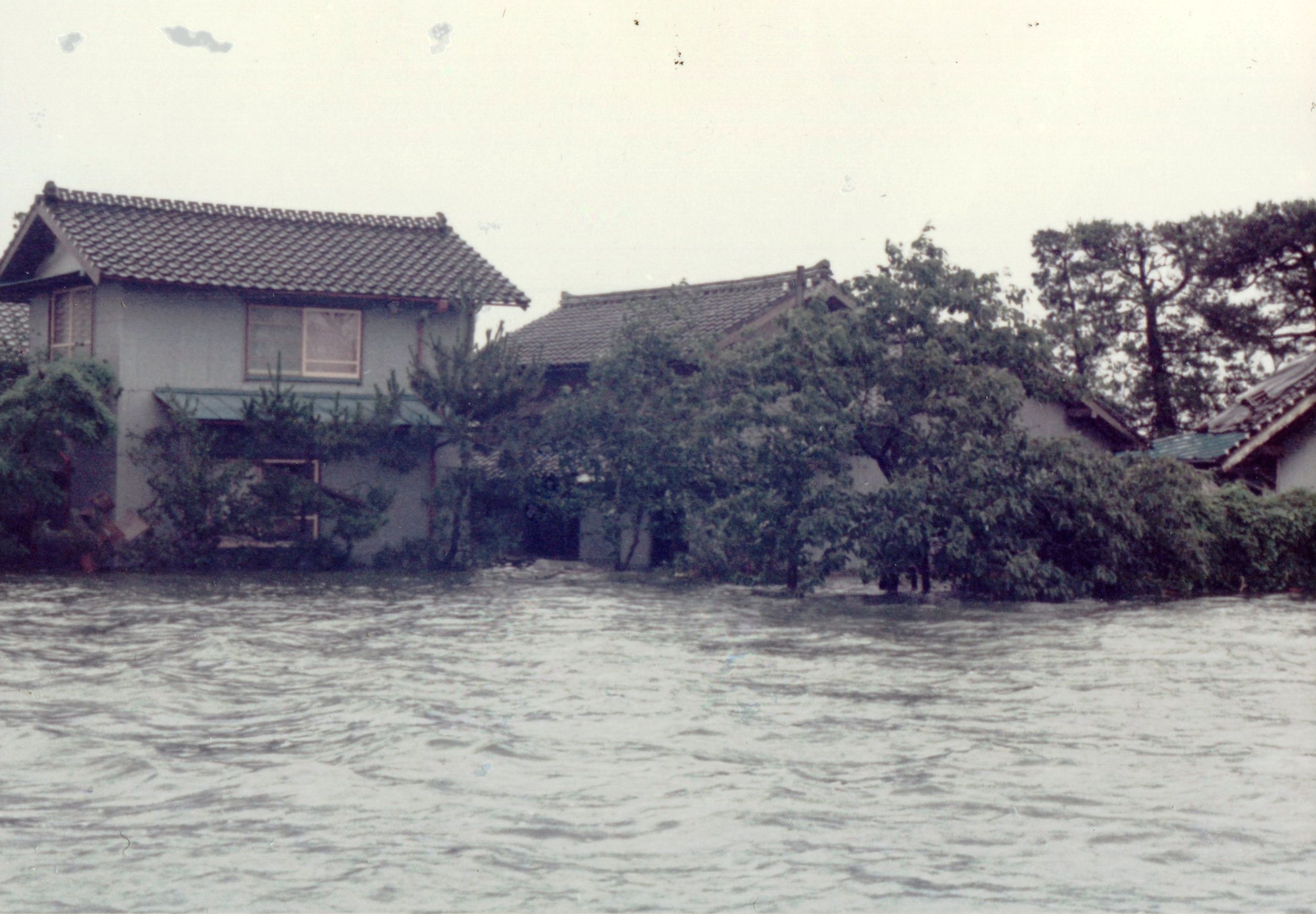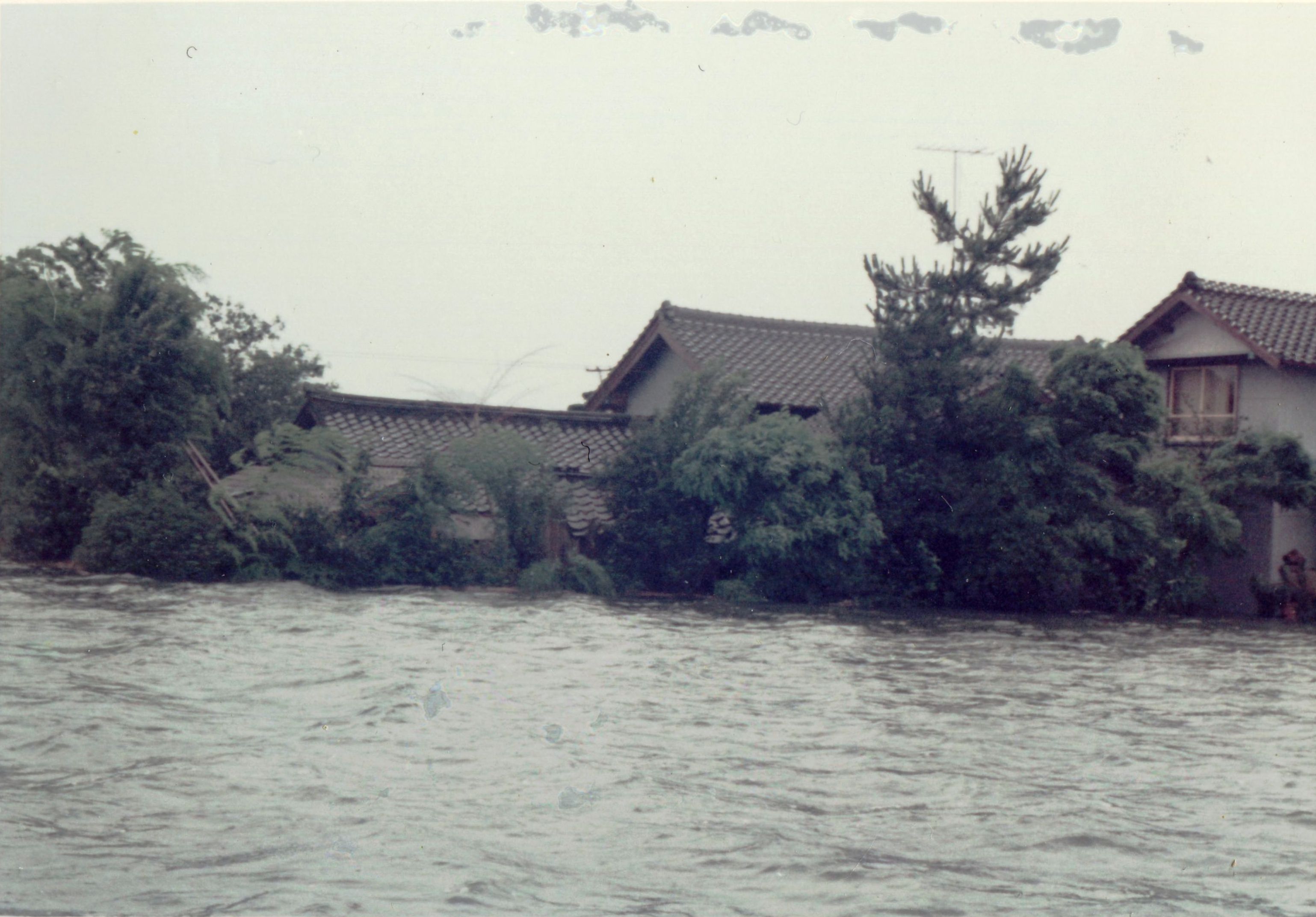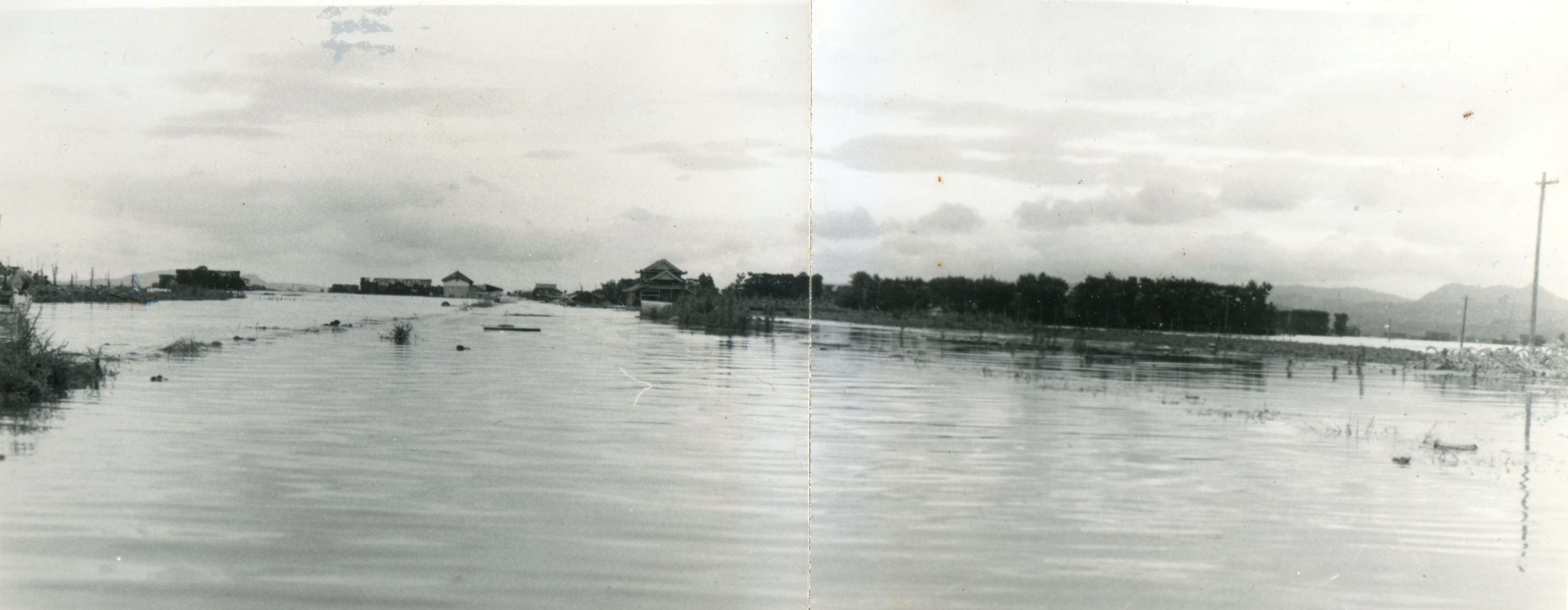 斐川町の47水害の記録(元斐川町職員錦織勉氏撮影) ここに掲載した写真は、旧斐川町役場に勤務されていた錦織勉氏が撮影され、アルバムに整理して保存されていたものです。同氏の承諾を得て、公開させていただくものです。 昭和47年に現像、焼き付けされ、アルバムに貼られていたものをスキャナを用いて取り込んでいます。したがって、画像の劣化があり不鮮明となっておりますことをご了承ください。 写真の下に付した説明は、錦織氏がアルバムに記載されていたものに多少の補足を加えたものです。また、錦織氏によるメモのない写真についても、場所等が特定できるものについては、適宜こちらで説明を付させていただいております。 7/12 午後2時 大字沖洲昭和地内 7/12 午後2時 大字荘原町島灘地内 沖洲天満宮参道から天満宮を望む(大字沖洲) 十四間川決壊箇所(大字黒目松江分地内) 7/13 午後2時 大字沖洲瑞穂地内 7/13 午後3時 大字三分市川東上組地内 7/13 午後4時 大字黒目松江分地内 7/13 午後4時 大字三分市六丁場周辺 7/13 午前10時 大字三分市川東上組地内 7/13 午前10時 葉煙草水田冠水 7/14 午後1時 大字坂田碇地内 大字黒目松江分地内(道路上) 大字三分市東部の住宅 大字三分市六丁場地内 大字三分市六丁場から三分市東部を撮影 大字三分市六丁場湖岸部(水深2.5m) 豚の救出作業(7/13大字三分市地内) 牛の救出作業 チューリップ球根搬出作業(7/13大字三分市) 伊達県知事視察 空港道路にて(大字沖洲瑞穂地内) 7/14 正午 県知事被災地視察 共有: X で共有 (新しいウィンドウで開きます) X Facebook で共有 (新しいウィンドウで開きます) Facebook その他 印刷 (新しいウィンドウで開きます) 印刷 いいね 読み込み中…