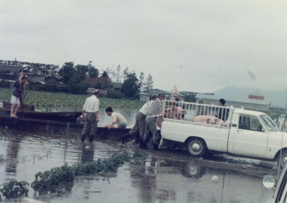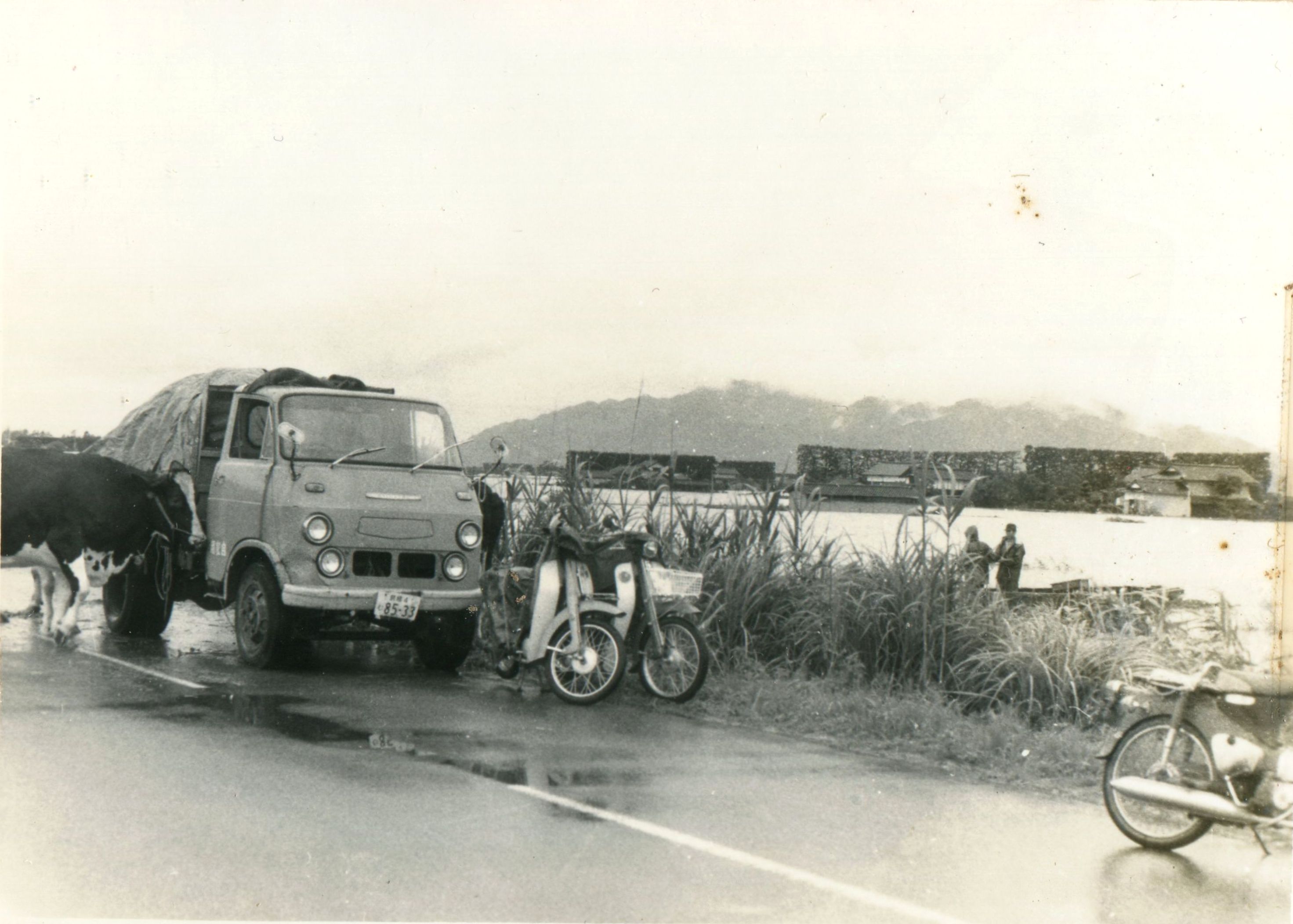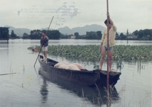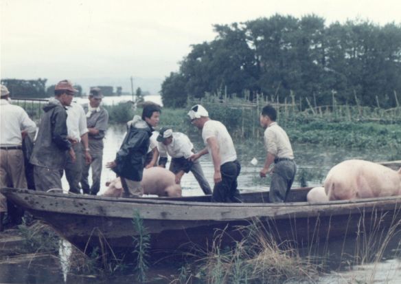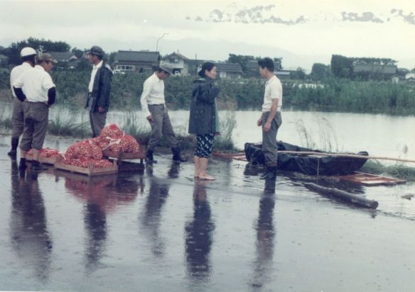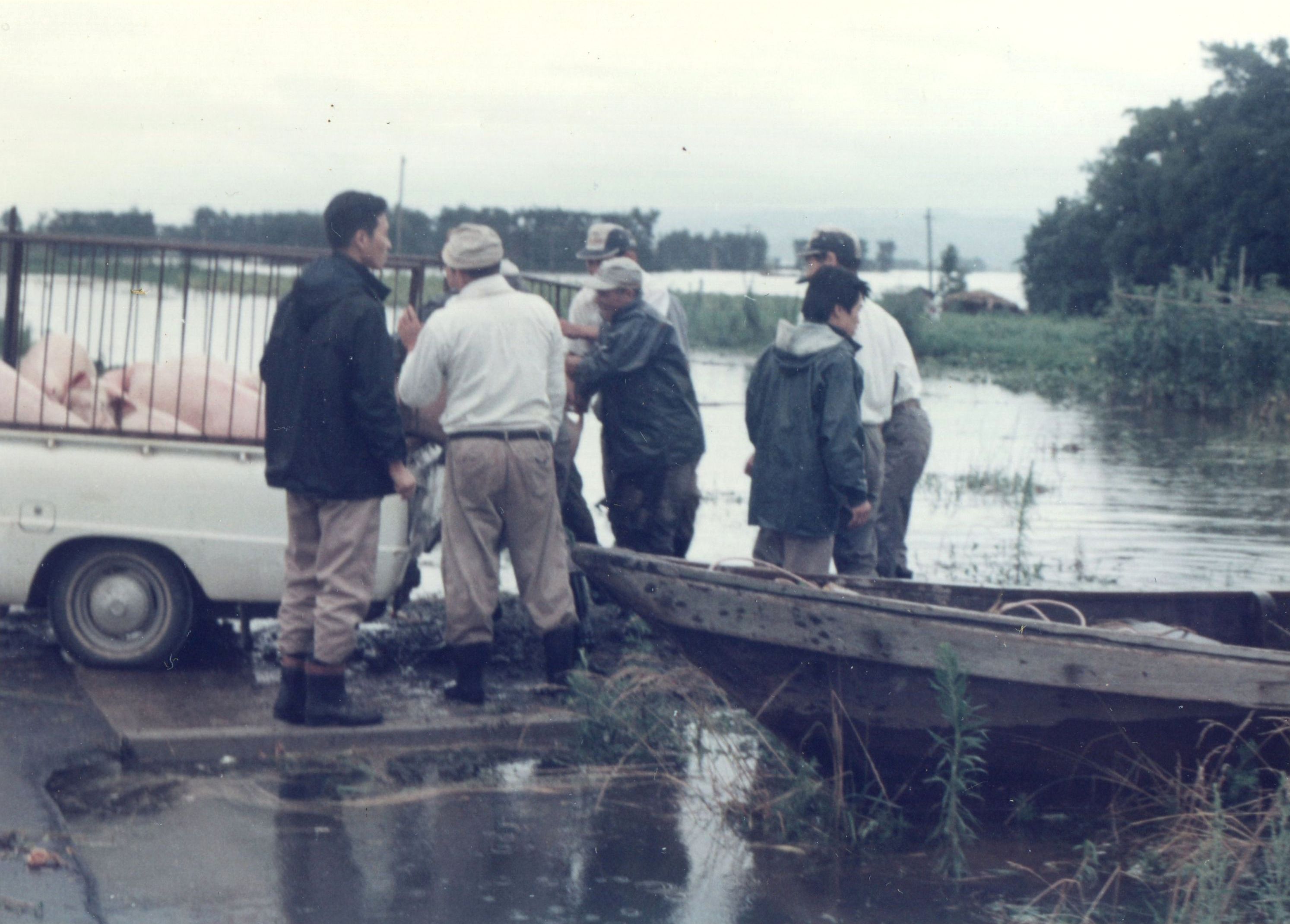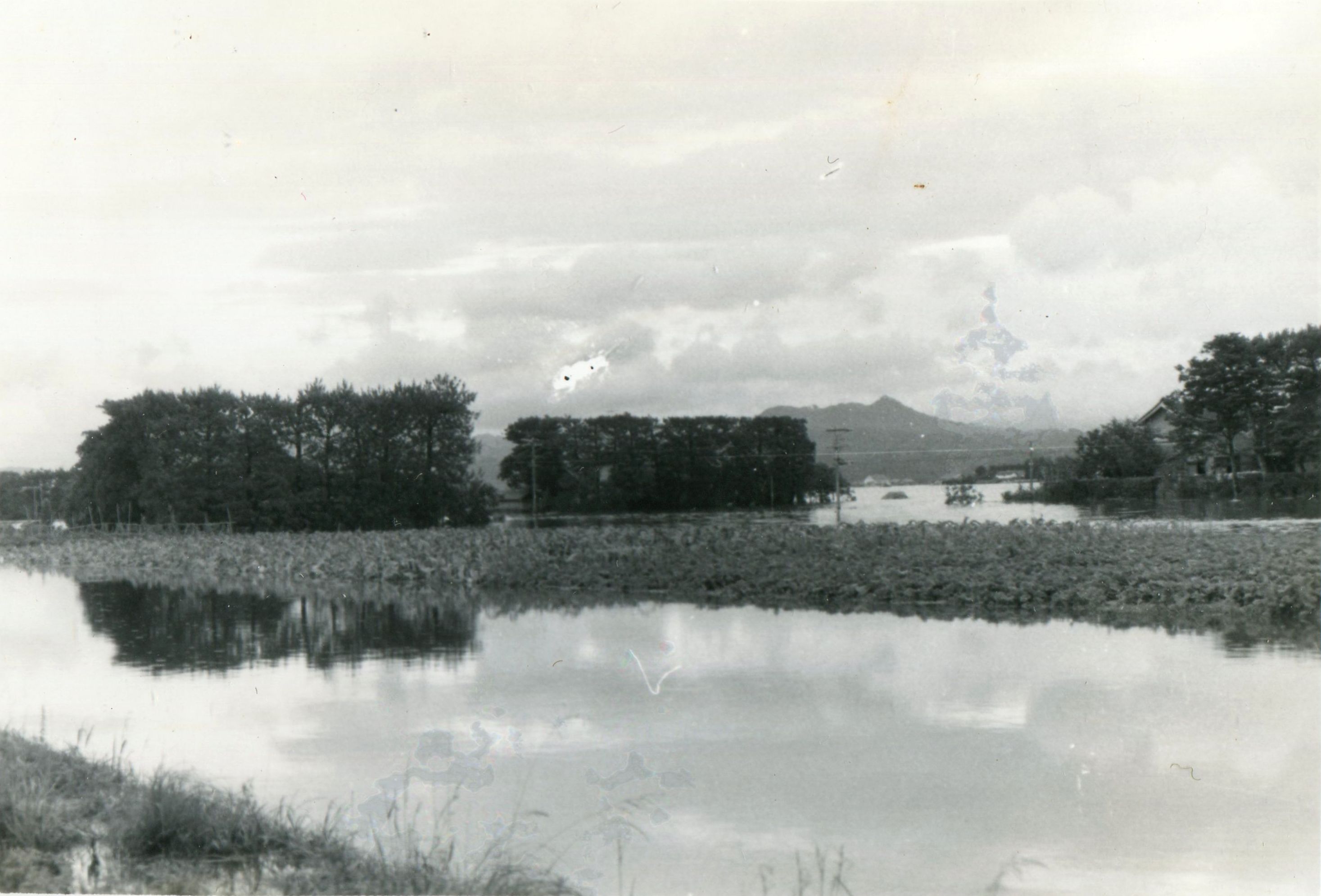 斐川町の47水害の記録(元斐川町職員錦織勉氏撮影) ここに掲載した写真は、旧斐川町役場に勤務されていた錦織勉氏が撮影され、アルバムに整理して保存されていたものです。同氏の承諾を得て、公開させていただくものです。 昭和47年に現像、焼き付けされ、アルバムに貼られていたものをスキャナを用いて取り込んでいます。したがって、画像の劣化があり不鮮明となっておりますことをご了承ください。 写真の下に付した説明は、錦織氏がアルバムに記載されていたものに多少の補足を加えたものです。また、錦織氏によるメモのない写真についても、場所等が特定できるものについては、適宜こちらで説明を付させていただいております。 7/12 午後2時 大字沖洲昭和地内 7/12 午後2時 大字荘原町島灘地内 沖洲天満宮参道から天満宮を望む(大字沖洲) 十四間川決壊箇所(大字黒目松江分地内) 7/13 午後2時 大字沖洲瑞穂地内 7/13 午後3時 大字三分市川東上組地内 7/13 午後4時 大字黒目松江分地内 7/13 午後4時 大字三分市六丁場周辺 7/13 午前10時 大字三分市川東上組地内 7/13 午前10時 葉煙草水田冠水 7/14 午後1時 大字坂田碇地内 大字黒目松江分地内(道路上) 大字三分市東部の住宅 大字三分市六丁場地内 大字三分市六丁場から三分市東部を撮影 大字三分市六丁場湖岸部(水深2.5m) 豚の救出作業(7/13大字三分市地内) 牛の救出作業 チューリップ球根搬出作業(7/13大字三分市) 伊達県知事視察 空港道路にて(大字沖洲瑞穂地内) 7/14 正午 県知事被災地視察 共有: X で共有 (新しいウィンドウで開きます) X Facebook で共有 (新しいウィンドウで開きます) Facebook その他 印刷 (新しいウィンドウで開きます) 印刷 いいね 読み込み中…